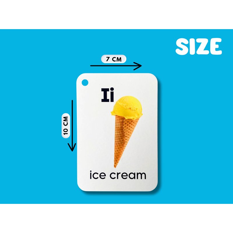 - Designed to withstand many learning sessions, these sturdy cards have a laminated finish that prevents ripping, wrinkling, and smudging. Their 10cm x 7cm size is ideal for little hands to hold and practice with. Give your child a headstart on reading success with these must-have Alphabet Flash Cards!