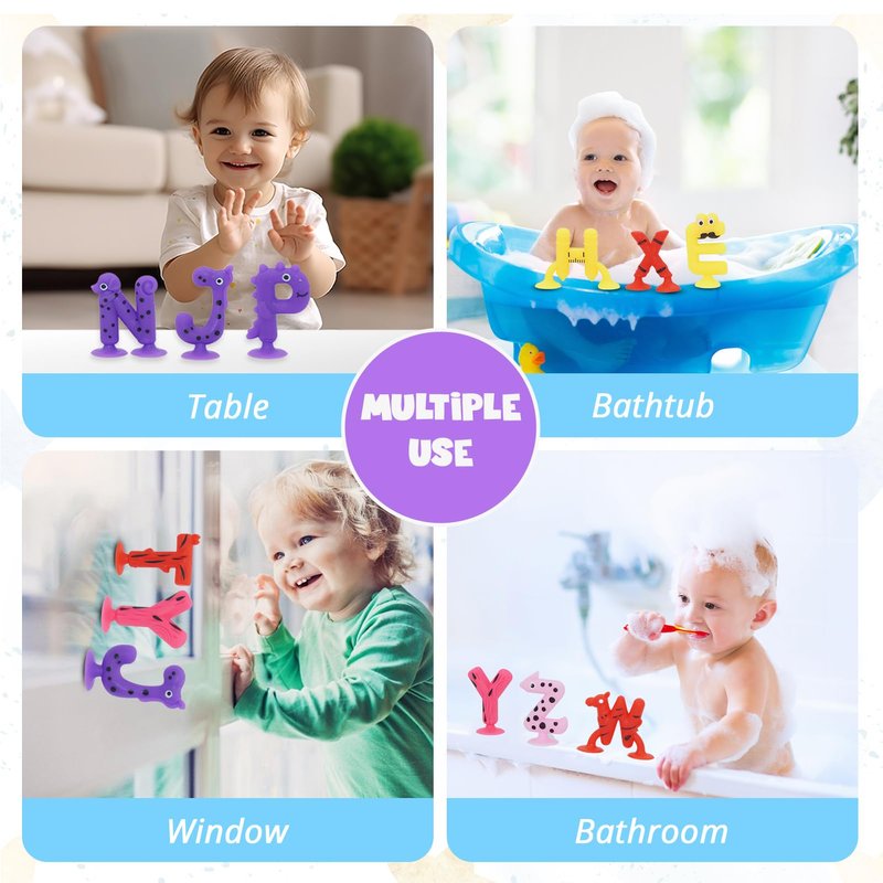 Alphabet Letters Learning Suction Toys: ABC Silicone Baby Bath Toys, Bathtub/Windows/Car/Travel Toys for Toddlers 1-3, Preschool Educational Montessori Sensory Toys for 1/2/3 Year Old