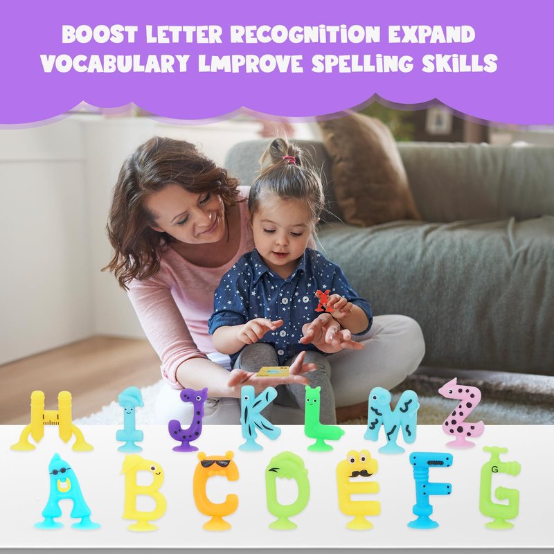- š Alphabet Letters Learning Suction Toys: Our set includes 26 adorable and vibrant little animal suction guys representing each letter of the alphabet. It's the perfect tool to help your child learn abc letters, colors, and more while having a blast! (Lettering color is random)