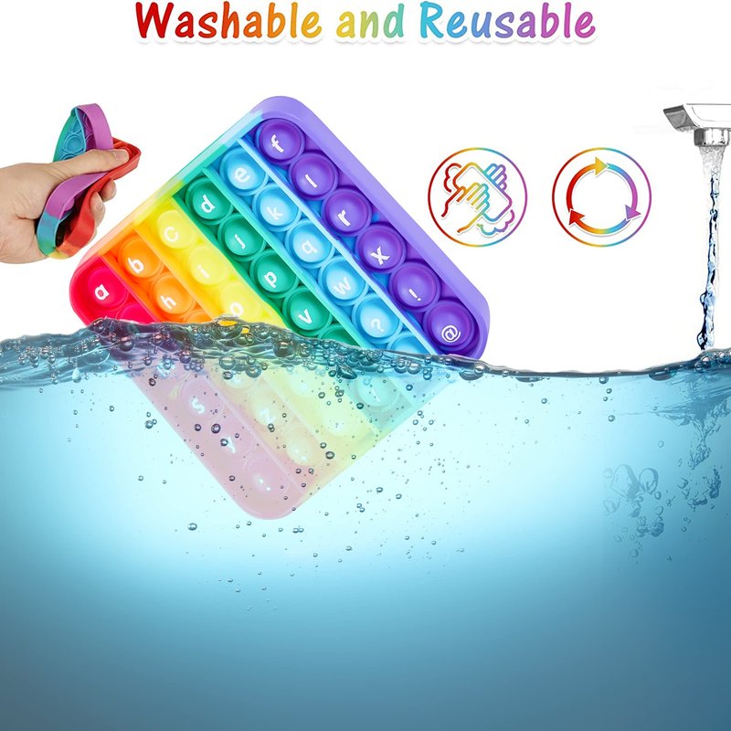 - đăPREMIUM MATERIALă--The uppercase alphabet pop toy is made of high quality silicone, soft, lightweight, foldable, waterproof, odorless, smooth, safe for babies and toddlers to play.
