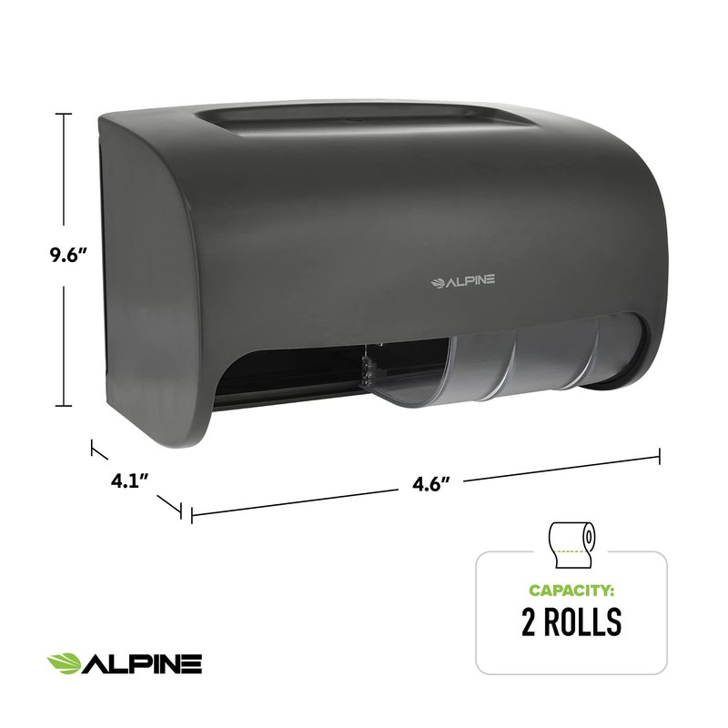 - BUILT TO LAST. Made using durable ABS plastic construction that is resistant to chemicals, heat and impact, the Alpine Toilet Tissue Dispenser is made to provide long-lasting strength and use. It also features a lock to help prevent tampering and vandalism.