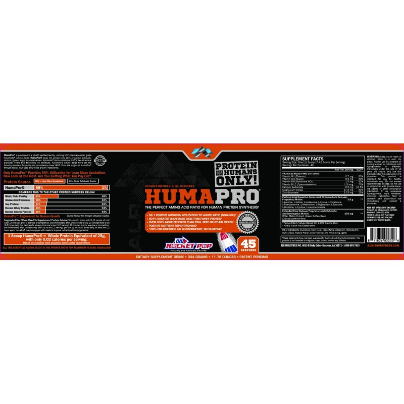 ALR Industries Humapro, Protein Matrix Blend, Formulated for Humans, Amino Acids, Lean Muscle, Vegan Friendly, 334 Grams (Rocket Pop)