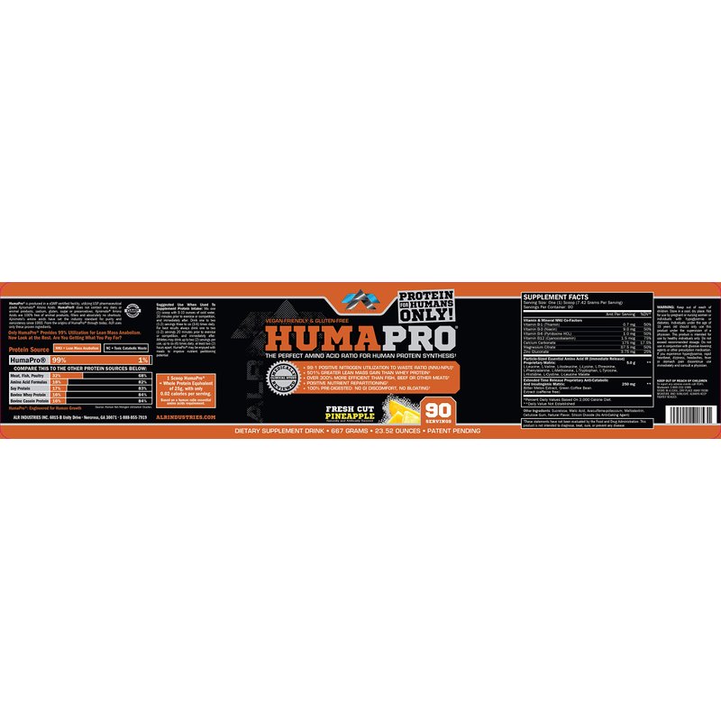 ALR Industries Humapro, Protein Matrix Formulated for Humans, Waste Less. Gain Lean Muscle, Fresh Cut Pineapple, 667 Grams