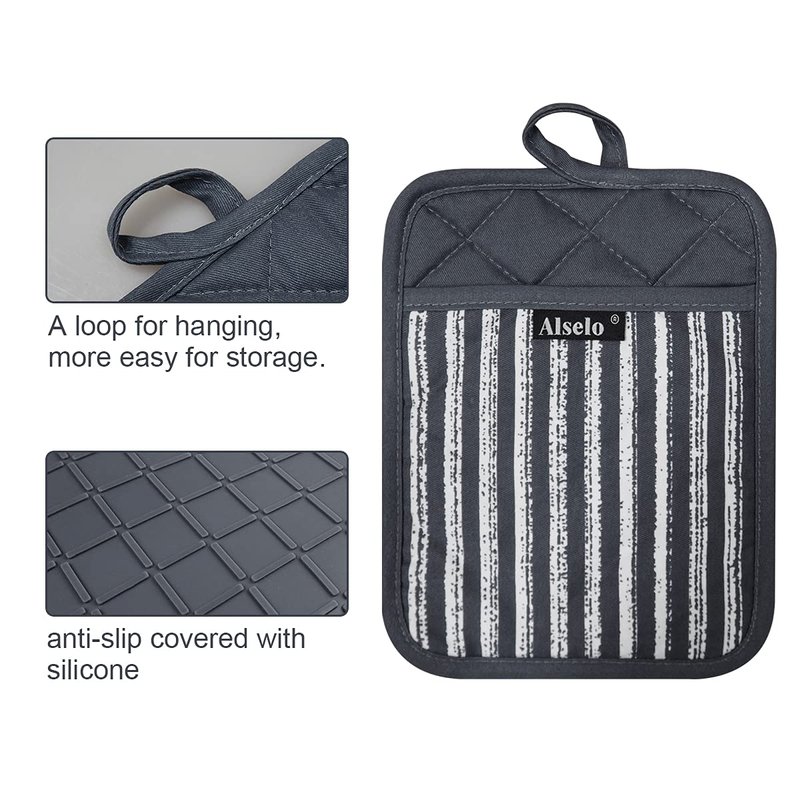 - 4.KITCHEN ESSENTIALS FOR COOKS / BAKERS: Alselo pot holders with pockets are ideal for all of your cooking, baking, grilling and kitchen/oven needs. make your cooking time easy and safe.