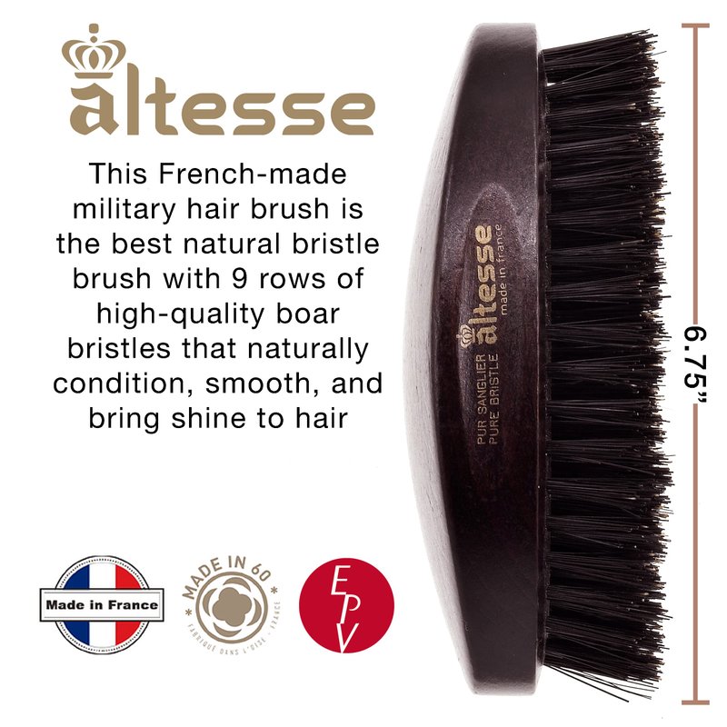 - This French-made brush is a military hair brush and beard brush recommended for styling normal hair. It is the best natural bristle military style brush with 9 rows of high-quality boar bristles that naturally condition, smooth, and bring shine to hair