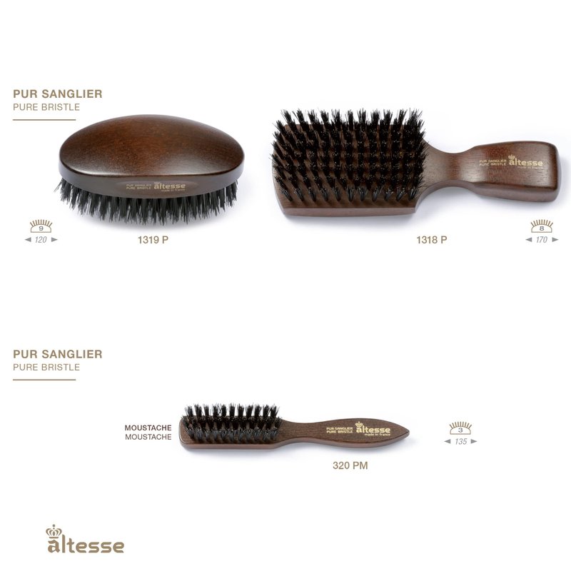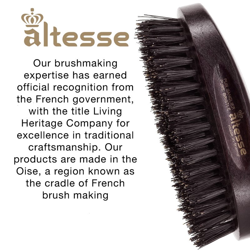 Altesse 1319P Military Brush Boar Bristle Hair Brush for Men Beard and Mustache Beard Dark Beechwood Hard Military Brush for Men with 9 Rows of 100% Firm Natural Bristle Hair Brush Handmade In France