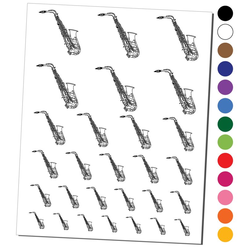 Alto Saxophone Woodwind Musical Instrument Temporary Tattoo Water Resistant Fake Body Art Set Collection - Black (One Sheet)
