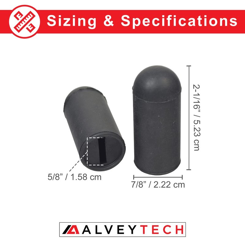 AlveyTech Black Rubber Tips for 5/8" Wheelchair Wheel Locks - Pair fits Brake Handle, Transport Chair, Bariatric Chairs, Rollator, Replacement Lock Grip, Lightweight Covers 2-Pack Parts