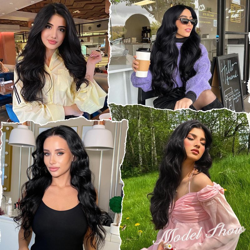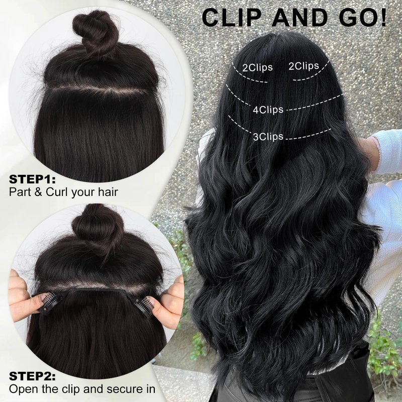 Why choose our hair extension? No tape,No glue, our hair extension only uses BB clips to fix.You can finish it in minutes with our hair extensions. Best suited for thin to medium hair types and for those with below shoulder-length hair,but if you have long hair to the waist, our wig will also give you a different surprise.It’s the perfect one and done solution for adding natural volume and length.