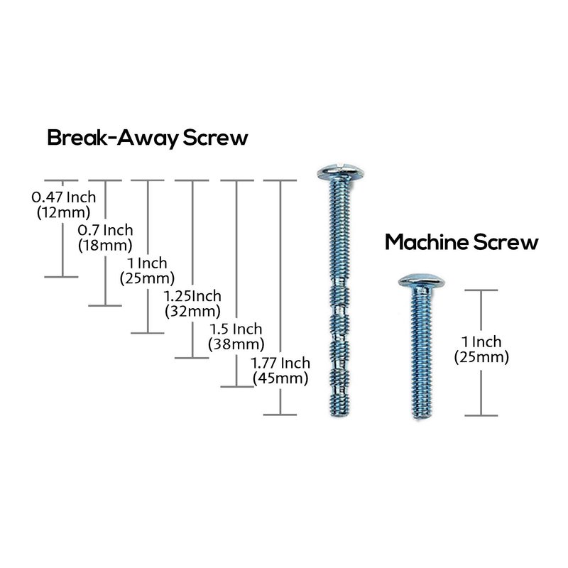 - Two sets of mounting screws included: 1 inch screws and breakaway screws; If you need them shorter, simply use pliers to cut off the excess