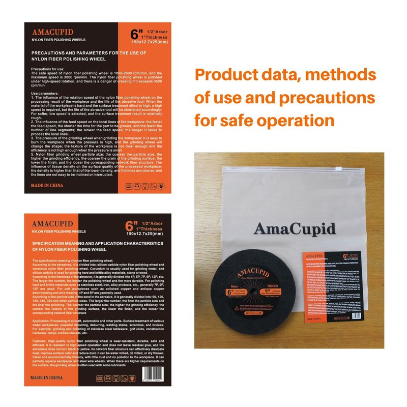 - Safety and precautions: Nylon fiber polishing wheels generally use a speed of 1800-2800 rpm, It is polished under high-speed rotation,Over 3500 RPM there may be a risk of rupture. Please select the nylon fiber wheel suitable for your work requirements according to the parameters in the provided instruction manual, and standardize the safe operation