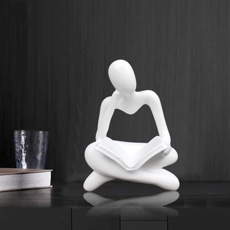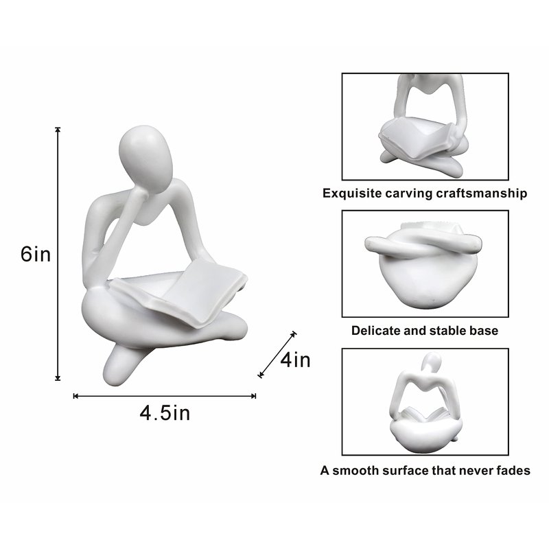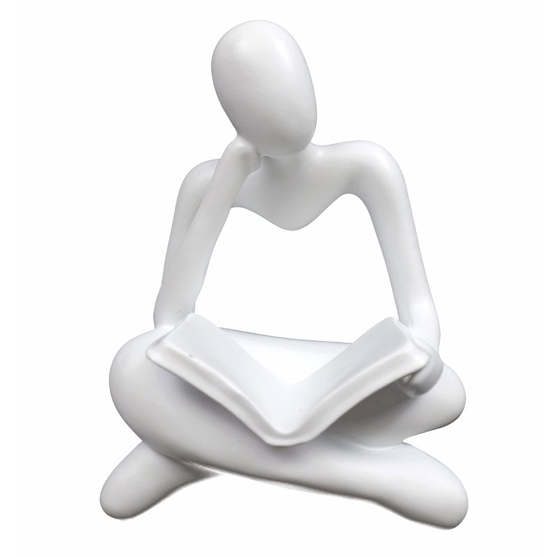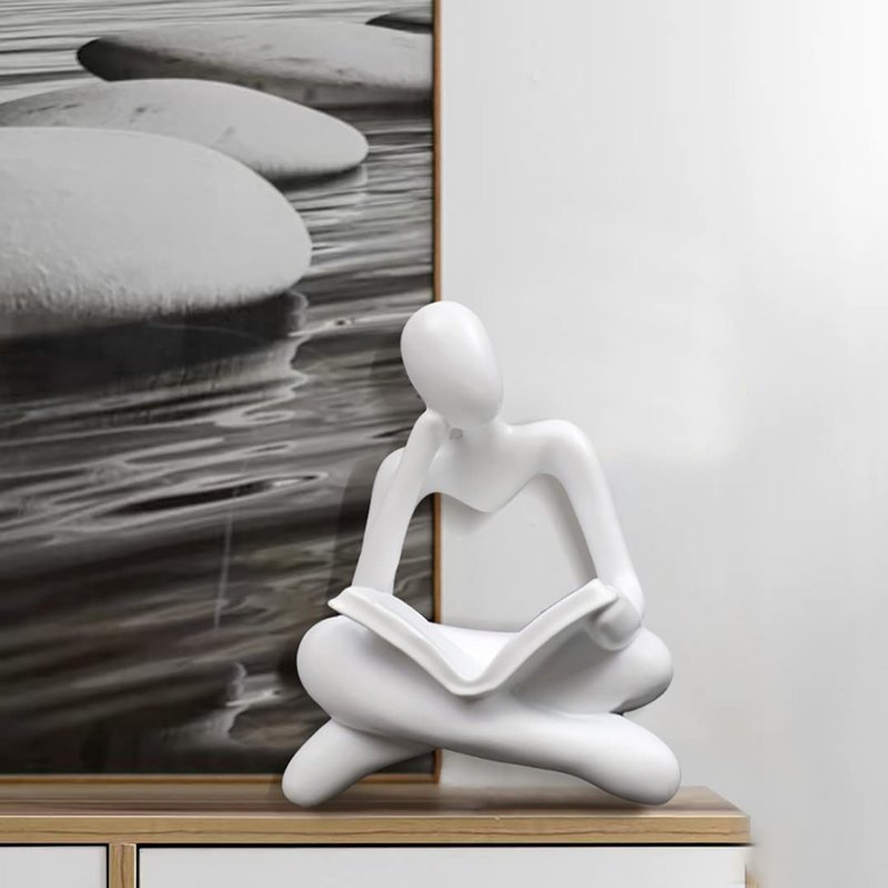 AMAHPSPE Thinker Statue Reading Women Figurine Abstract Art Sculpture Home Decor Modern White Decor Accents White Thinker Figurines for Living Room Shelves Bookshelf Office Shelf Desktop Decor