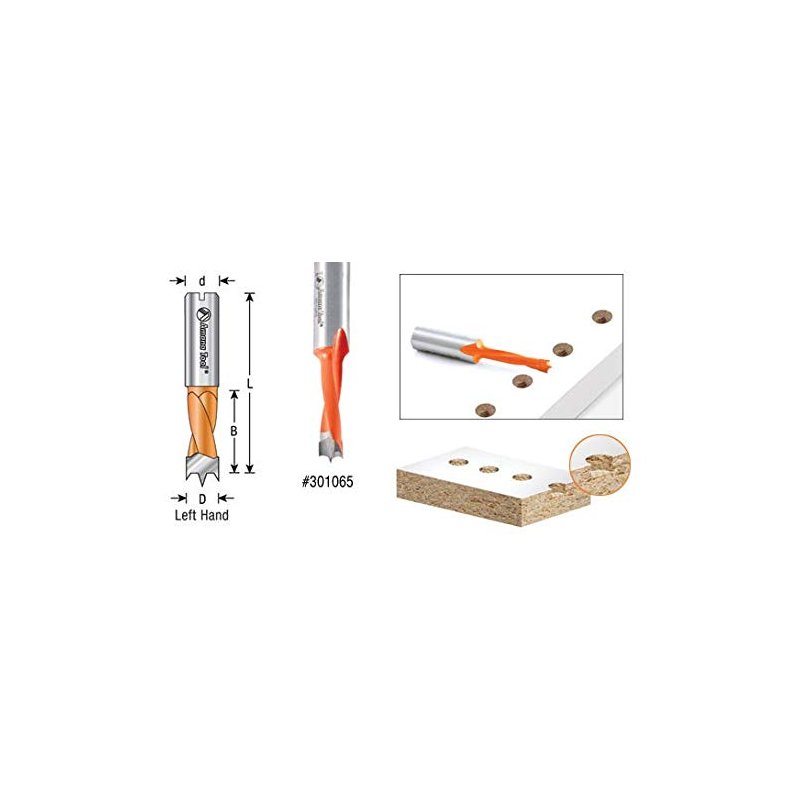 Amana Tool 301008 Carbide Tipped Brad Point Boring Bit Dowel Drill Bits 8mm Dia x 57mm Long x 10mm Left Hand