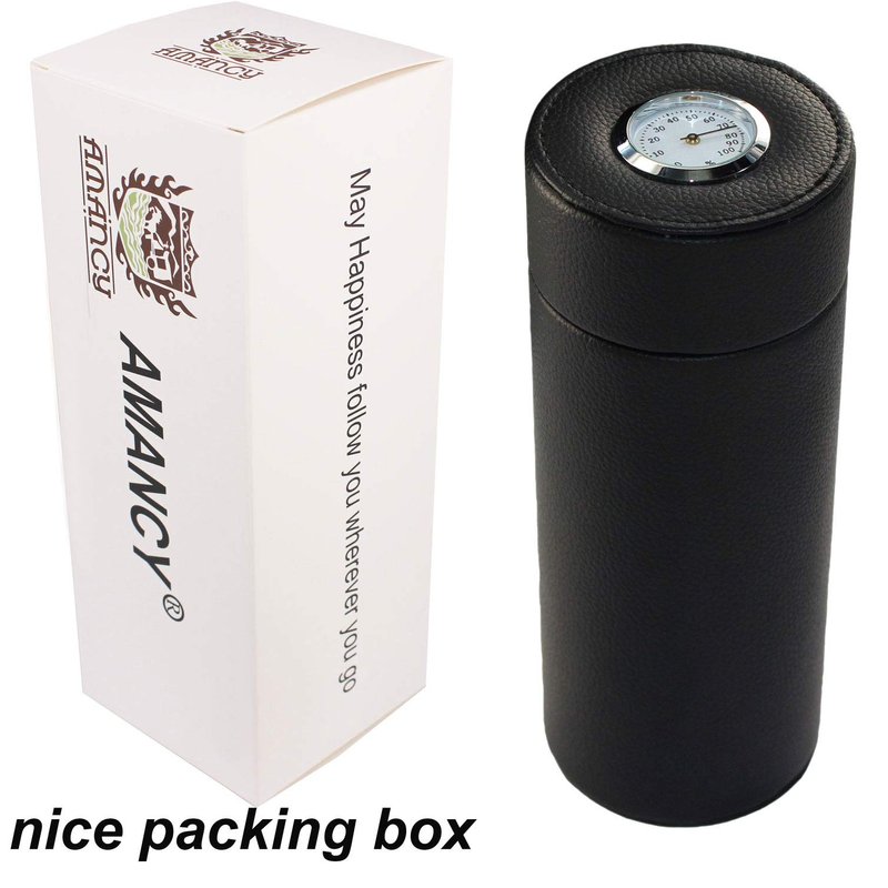 AMANCY Old Fashioned Cigar Holder Case with Outside Hygrometer,Vintage Cedar Wood Lined Portable Travel Leather Cigar Humidor Jar