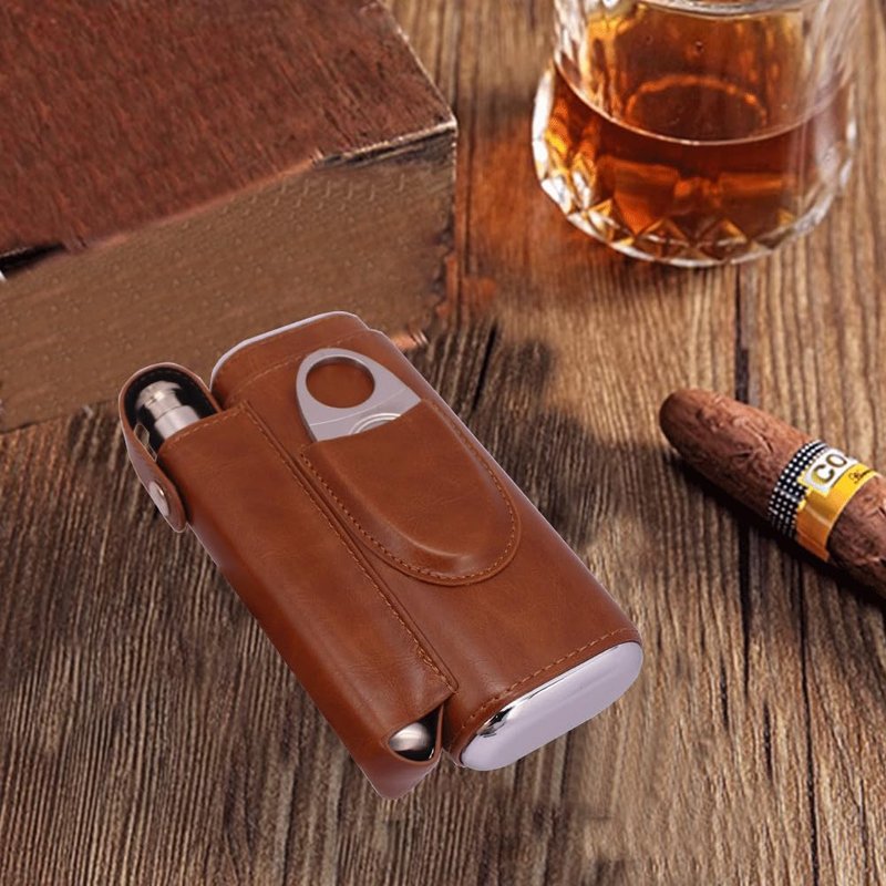 AMANCY Portable Cigar Case Flask Gift Set - 2 Finger Cigar Case with 2 Oz Stainless Steel Flask and Cutter