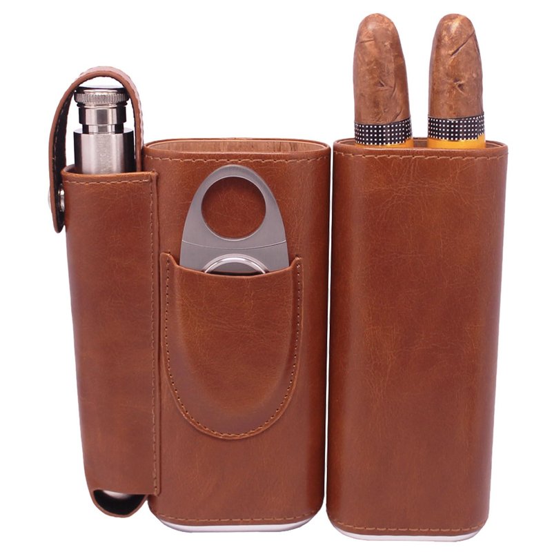 - The set include flask , stainless steel cigar cutter ,cigar case and funnel. Perfect Gift For Husband ,Boy friend, Groomsmen,Boss,Father, Any Cigar Lovers who enjoys a smoke and a drink.