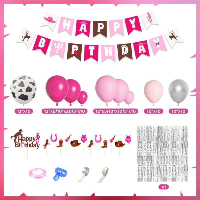 - Easy To Use: Simply inflate the balloons using air or helium, string them together using the balloon strips, attach the cowgirl balloons to the arch with dot glue, and complete the look by hanging the HAPPY BIRTHDAY banner