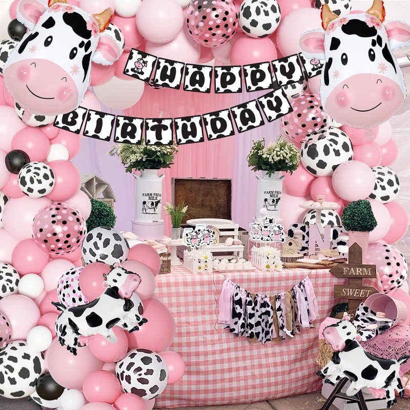 - Easy To Assemble: This cow birthday decorations kit with 4 balloon accessories, including balloon arch, balloon glue points, tying tool and ribbon; These balloon tools can release your hands and will help you make a beautiful pink cow balloon arch easier and faster