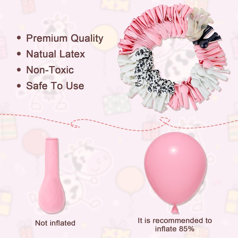 - Premium Quality: Our pink white and cow print balloons are made of natural latex, cow head and Mini cow balloons are made of foil material, non-toxic, thick, not easy to break, safe to be used for children; Our cow balloon garland kit has balloons of different colors and sizes