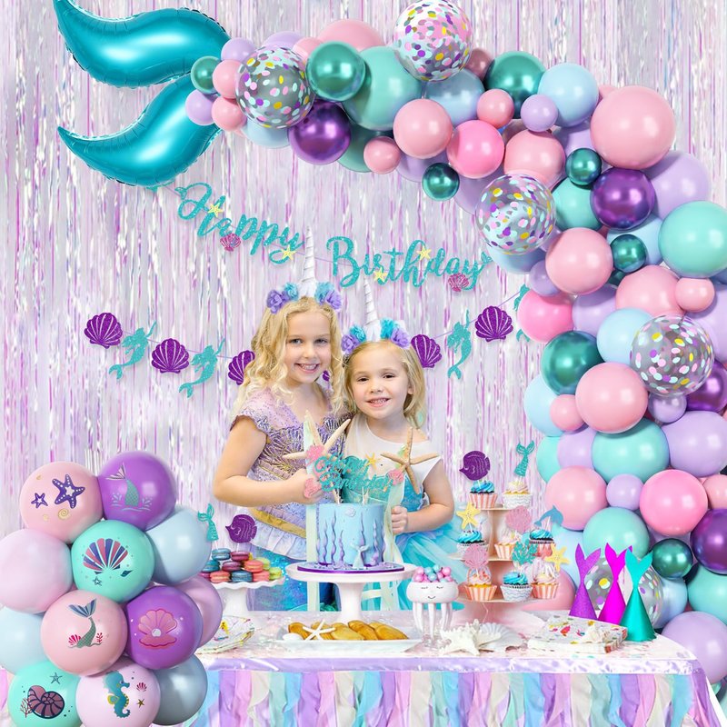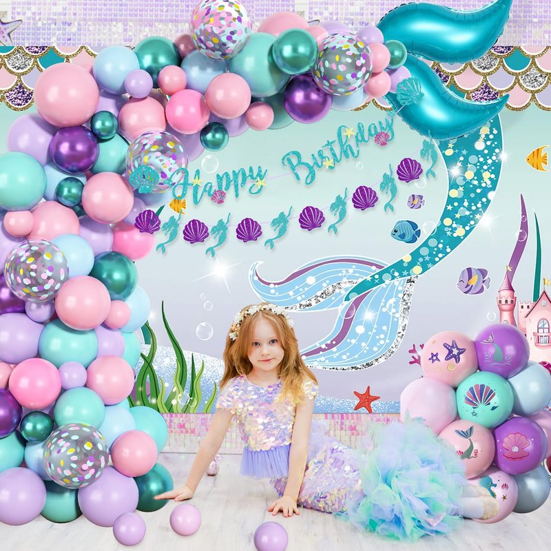 - Notes: Your safety matters most. Please use our mermaid birthday decorations cautiously; Parental supervision is crucial for children under 12 due to choking hazards. Keep mermaid balloon garland kit away from heat, wind, and sharp objects