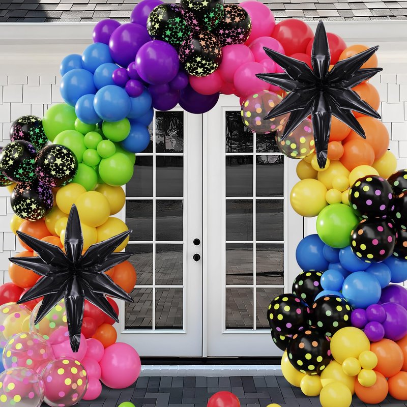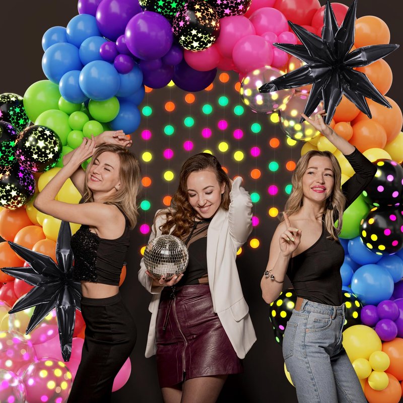 - Used In Variety Occasions: The rainbow party decorations will be very popular at your party; This neon party decorations set is versatile and ideal for various occasions; It's great for black light party decorations, fluorescent party, birthday party, back to 80s 90s, holiday carnival, graduation, anniversary, wedding, festival celebrations, baby showers, school activities; Our disco balloon arch kit serves as a fantastic backdrop and prop, enhancing the festive atmosphere of your party
