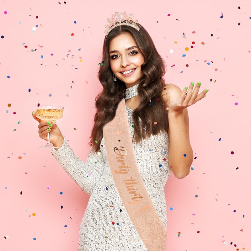 - High Quality: 30th birthday crown is made of eco-friendly alloy metal and sparkle rhinestones and pearls, durable and comfortable to wear. The dirty thirty birthday sash is made of glitter sash and colorful font, make you your feeling like a queen when wearing it.