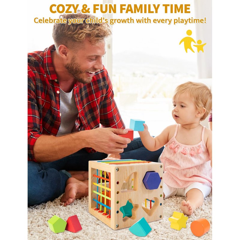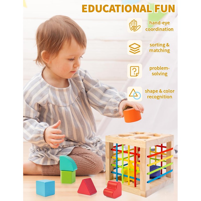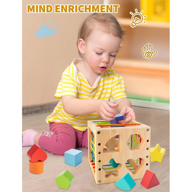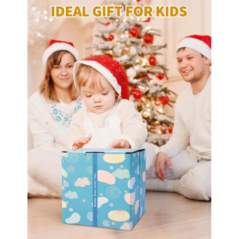 - Ideal Gift: This gift-wrapped wooden shape sorter cube is a good gift toy for boys and girls, ideal for birthdays, Christmas, or everyday celebrations