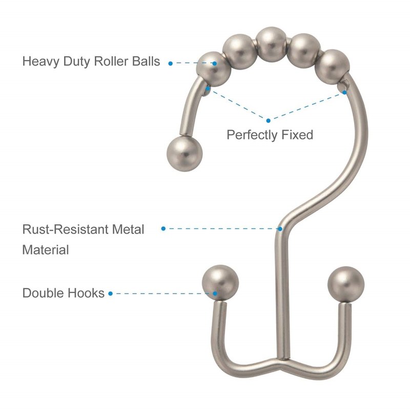 - Double hooks -The double shower curtain hooks are strong enough to hold a heavy curtain and liner.