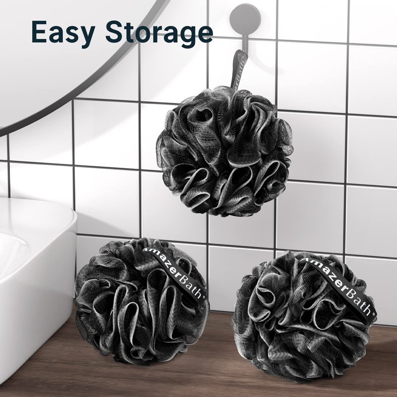 AmazerBath Loofah Sponge, Shower Loofah for Men and Women - Body Scrubber Loofa Set of 3 Classic Black & White Edge, Bath Sponge 60g/PCS