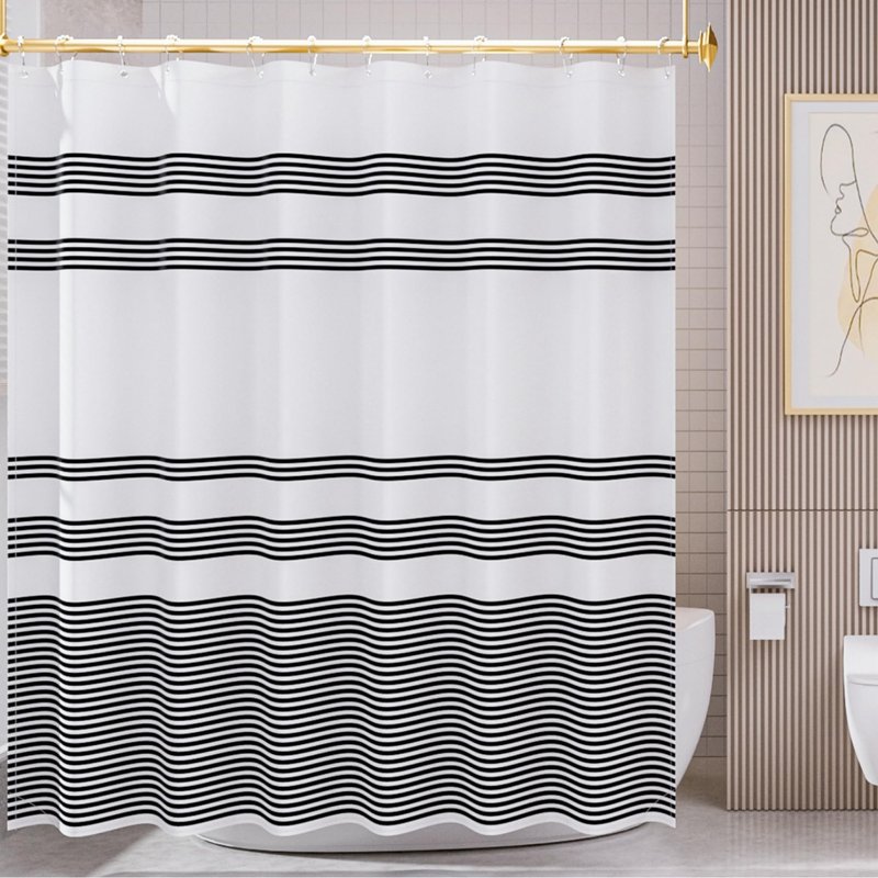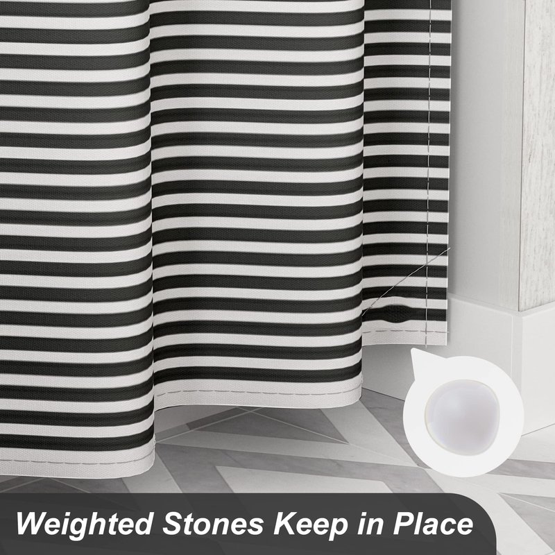 AmazerBath Shower Curtain, Washable Cloth Black Shower Curtain Sets with 12 Shower Curtain Hooks, Fabric Rustic Black and White Striped Shower Curtain, Farmhouse Bathroom Shower Curtain, 72x72 Inches