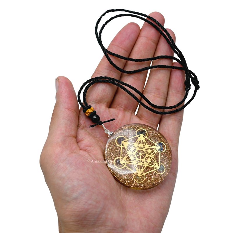 Amazing Gemstone Orgone Pendant with Copper Shavings and Metatron Cube - Metal Healing Pendant Necklace for Women Men and Kids