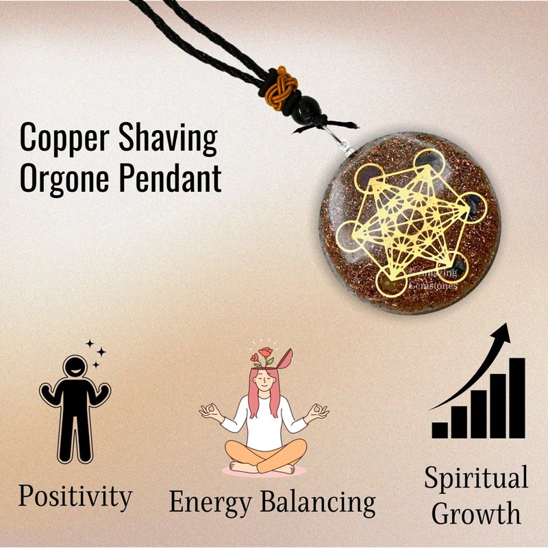 - 👍 Copper Shavings Orgone Pendant also referred as Orgonite Pendant has the wearing size varies between 10-16 inches long, while the size of Pendant is about 2 inches.