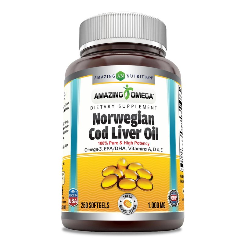 Amazing Omega Norwegian Cod Liver Oil 1000 Mg Softgels Supplement | Omega-3, EPA, DHA, Vitamin A, Vitamin D & Vitamin E (Orange | 250 Count)