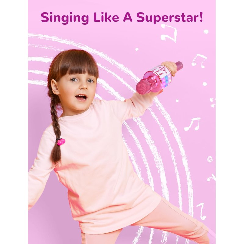 - All-in-One Kids Microphone Toys for Girls: Portable karaoke microphone can be used as microphone, karaoke machine, high quality speaker, voice changer. A convenient, multi-functional wireless microphone toys that can bring girls age 6-8 fun anywhere, anytime