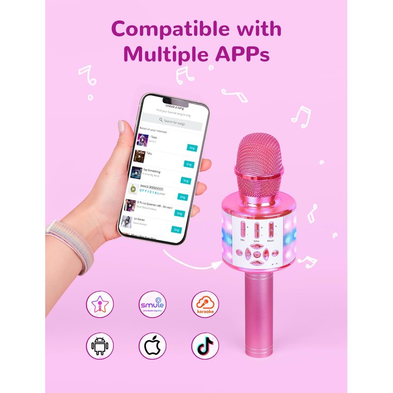 - Great Kid Toy Gifts: The karaoke microphone toy allows a little superstar to singing or play the favorite songs in apps like Spotify, YouTube or Apple music~ A great chioce to send a Amazmic kid Karaoke Microphone as a birthday gift for girls and boys! This kids toys suit for girls age 3 4 5 6 7 8 9 10 years old