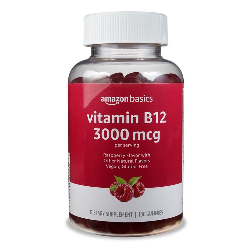 Amazon Basics Vitamin B12 3000 mcg Gummies, Normal Energy Production and Metabolism, Immune System Support, Raspberry, 100 Count (2 per serving) (Previously Solimo)