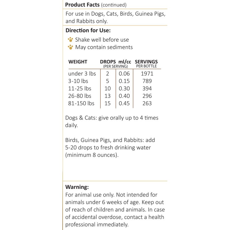 - Formulated Just For Pets: This herbal pet supplement contains antioxidants and is designed to help your pet maintain a healthy microbiome and a healthy inflammatory response. It supports your dog, cat, bird, rabbit, or guinea pig's overall natural immune systems. For additional support, try Amber NaturalZ Vibactra Plus - Immune Support.