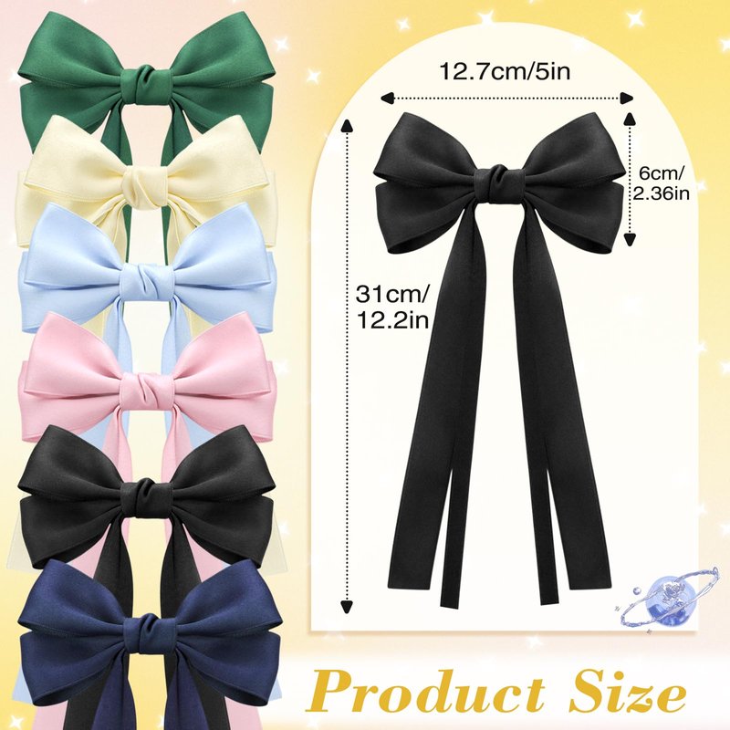 - đăUsed WidelyăThe long tail design of a ribbon bow, with braids, ponytails and other shapes will make the hairstyle more fluffy, can be used for special festivals such as birthdays, parties, cosplay, performances (Tip: if it is to be used in shows, in order to increase the bow firmness, add bobby pins under it).