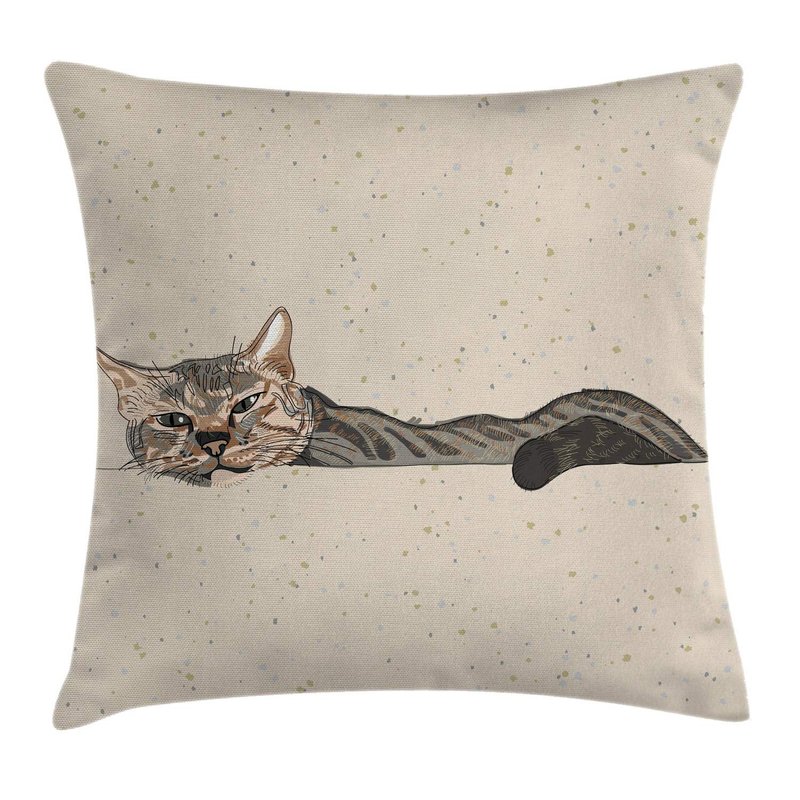 Ambesonne Cat Throw Pillow Cushion Cover, Lazy Sleepy Cat in Earth Tones Furry Mascot Indoor Pet Art Illustration, Decorative Square Accent Pillow Case, 18" X 18", Grey Beige