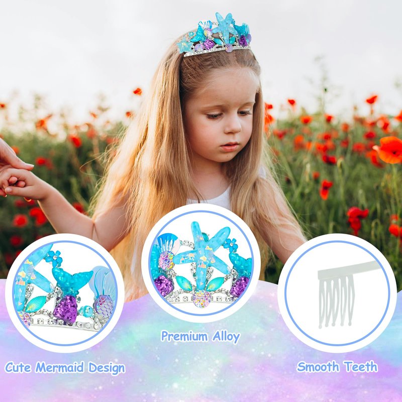 - Comfortable to Wear: Our mermaid crowns are perfectly sized to fit most head shapes and can be adjusted according to your size, extremely comfortable to wear, the right weight won't bring the wearer the slightest burden, and the high-quality alloy material is silky smooth and soft, very friendly to the skin, won't scratch and bruise the scalp and skin, making your wearing experience better, the two sides provide a dense toothed comb, which is able to Grip your hair firmly, even if it is shaken strongly, it will not fall off easily.