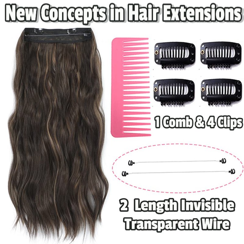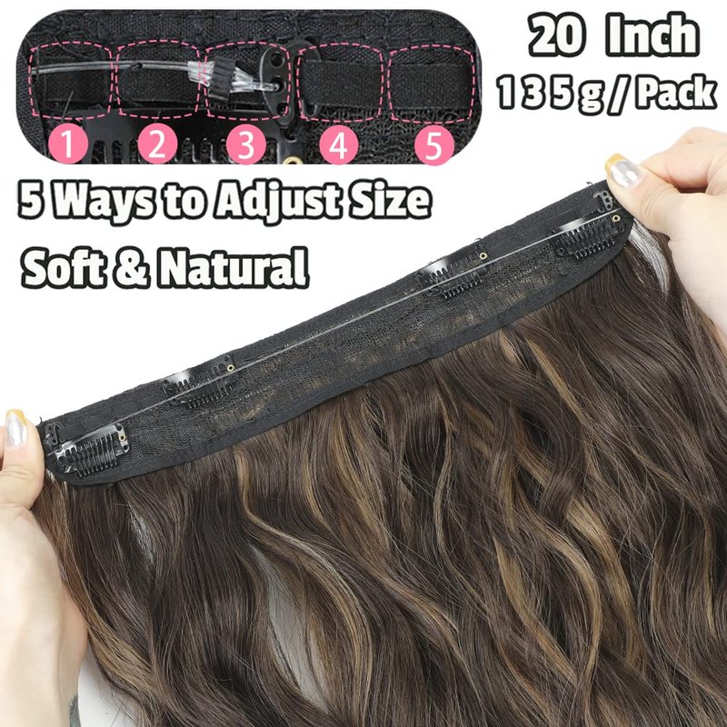 2023 NEW Fashion Invisible Wire Hair Extensions -- More Comfortable & Natural & Lighter! -- Make you the Brightest Star ! Specifications 1. Name: Halo hair extensions, Invisible Wire Hair Extensions 2. Material: 100% high quality temperature resistant fiber 3. Length: 20 inches 4. Color: Dark Brown Hair Extensions 5. Comfortable and Secure:It has 2 diffrent length invisible wire and 4 clips.Two sizes of invisible wire with multiple adjustable sizes can perfectly fit whatever head circumference. At the same time, four clips make it more firmly connected, so that you can wear the hair extension without worries. 6. Beauty Uses: Parties, bars, activities, festivals, celebrations, They can be styled to create different looks just like your own hair , show off your beauty on different occasions. Hair extensions care: You can add conditioner and water to the bottle and spray it in the secret hairpiece.Then comb it with your fingers or wide-toothed.This makes the synthetic hairpieces look less dry and reduce hair loss and tangle.And please wash your long wavy secret hair extensions with warm water.The best way is to wrap the invisible secret extensions in a towel to absorb water and then dry it naturally.