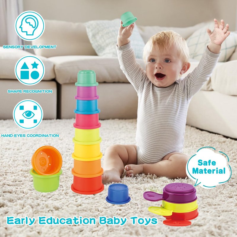 - Early Education toys Preschool: Unique and Colorful design helps baby to recognize the color. featuring features large numbers on the bottom to help toddlers practice counting. The Stacking cups can be stacked, nested, and played with in countless ways, encouraging creativity and developing fine motor skills. Encourages early development through sensory play and motor skills.