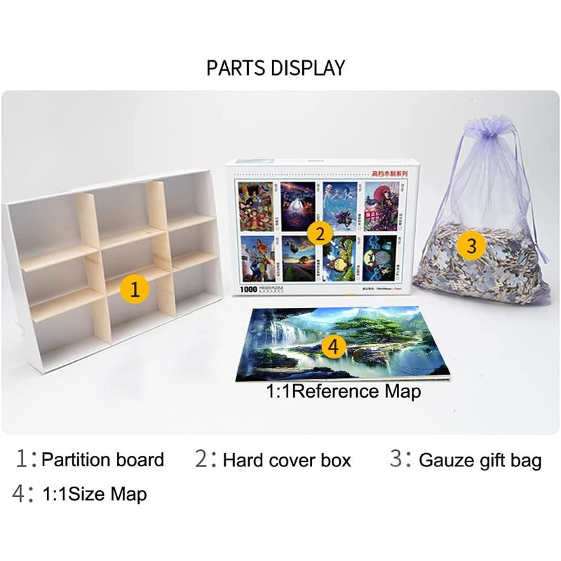 - 【Specification】Wood puzzle 1000 piece, partition board, 1:1 reference poster. Finished size: 29.5 inch x 19.7 inch (75cm*50cm) .