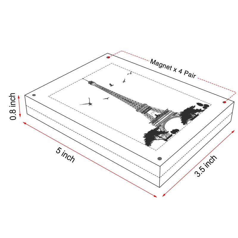 - ✔WELL-MADE,STURDY and THICKER: We designed the frame to be solid and stable in both portrait and landscape orientation. And we used four small and strong magnets to securely hold the super-clear acrylic blocks together.