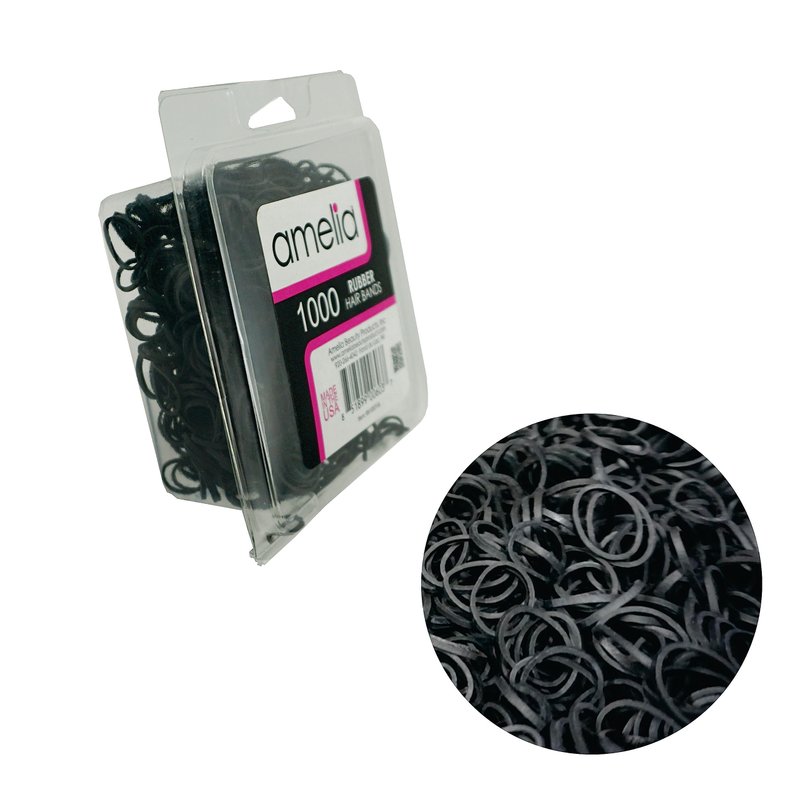 Amelia Beauty | 1000 Count 1/2" Rubber Bands | Premium US Made Rubber Hair Ties | Ideal for Ponytails, Braids & Beards | Strong All Day Hold | Convenient Re-closable Container | Black