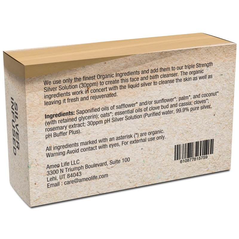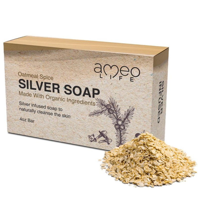 Ameo Life Oatmeal Spice Silver Soap with 30ppm Silver - Naturally Cleanses the Skin, 4 oz Colloidal Silver Soap Bar for Women and Men