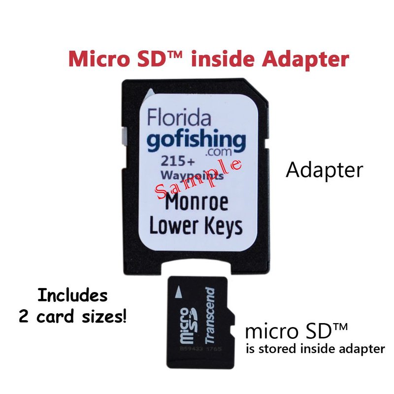 Compatible with Garmin Humminbird Lowrance Raymarine Simrad. Unique, easy to use data files for fishing, diving & boating on a microSD memory card stored inside Adapter - includes 2 card sizes!