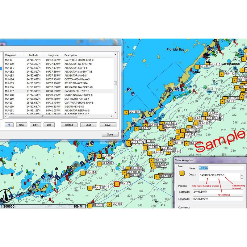 Data files are a compilation of public waypoints from dozens of resources created to save you time. Planning your next trip couldn't be easier - select the area to visit, find nearby reef sites, plan your route and visit more locations than ever before. Arrive at a site and it's crowded? Look up another nearby site and off you go. Having all GPS numbers for an area really does save you time.