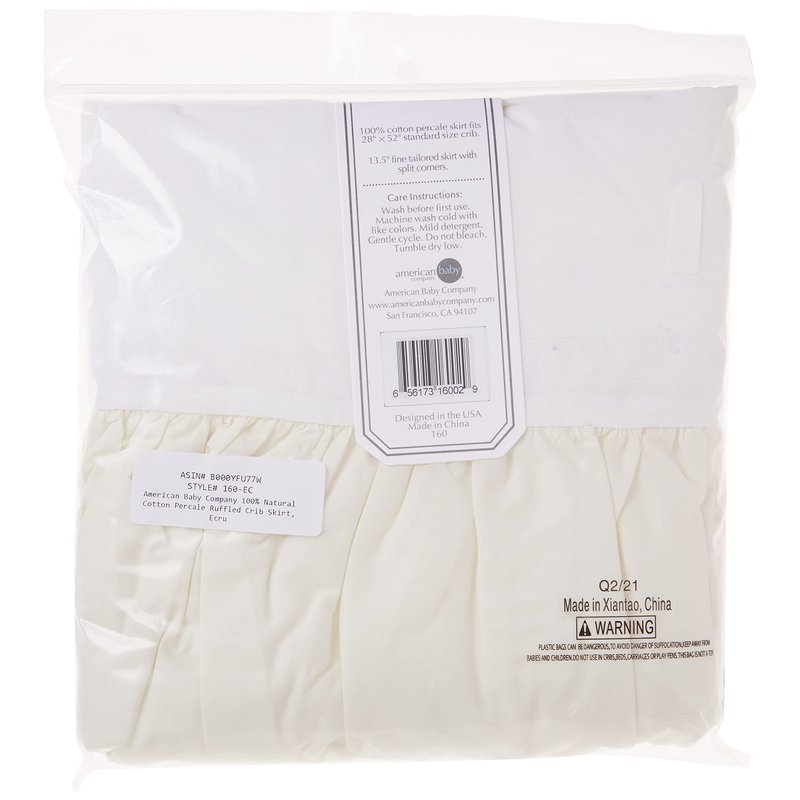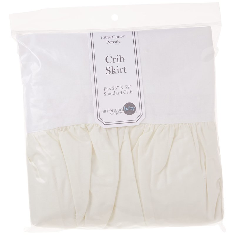 American Baby Company 100% Natural Cotton Percale Ruffled Crib Skirt, Cream, 52"L x 28"W + 13.5"