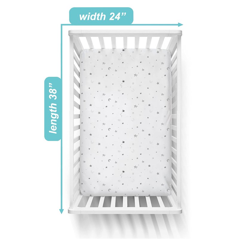 - Perfect Fit & Secure Coverage: Made from 100% Cotton Jersey and measuring 24” x 38” with a depth of 5 inches, our mini crib sheets snugly fit most standard pack and play mattresses and mini crib mattresses